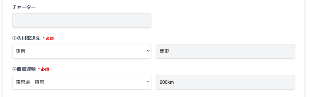 西濃運輸:一覧に該当する、住所が無い場合は、距離を目安に設定ください。