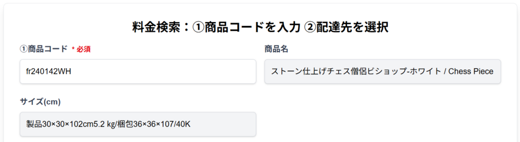 商品コード(商品番号)を入力した時点で、チャーター扱いと表示される場合は、都度見積もりとなります。